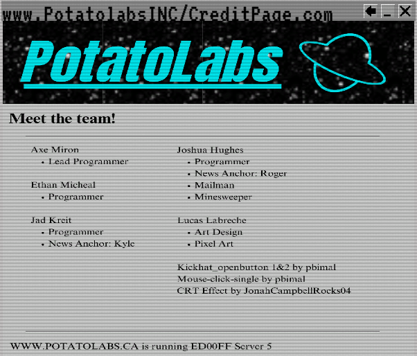 Made by Joshua Hughes, Axe Miron, Ethan Micheal, Jad Kreit and Lucas Labrech